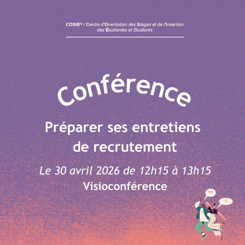 | Ces modules sont réservés aux étudiantes et étudiants de L3. Ces modules sont proposés par le Centre d'Orientation, des Stages et de l'Insertion des Étudiantes et Étudiants (COSIE). De nombreux modules et conférences sont proposés tout au long de l’année pour vous aider, vous conseiller et vous accompagner dans votre vie étudiante. Découvrez le programme complet. |
