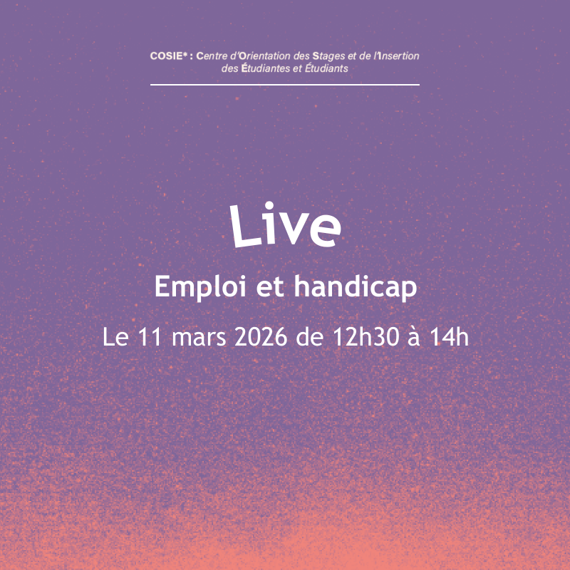 Ce live est proposée par le Centre d'Orientation, des Stages et de l'Insertion des Étudiantes et Étudiants (COSIE). De nombreux modules et lives sont proposés tout au long de l’année pour vous aider, vous conseiller et vous accompagner dans votre vie étudiante. Découvrez le programme complet. |
