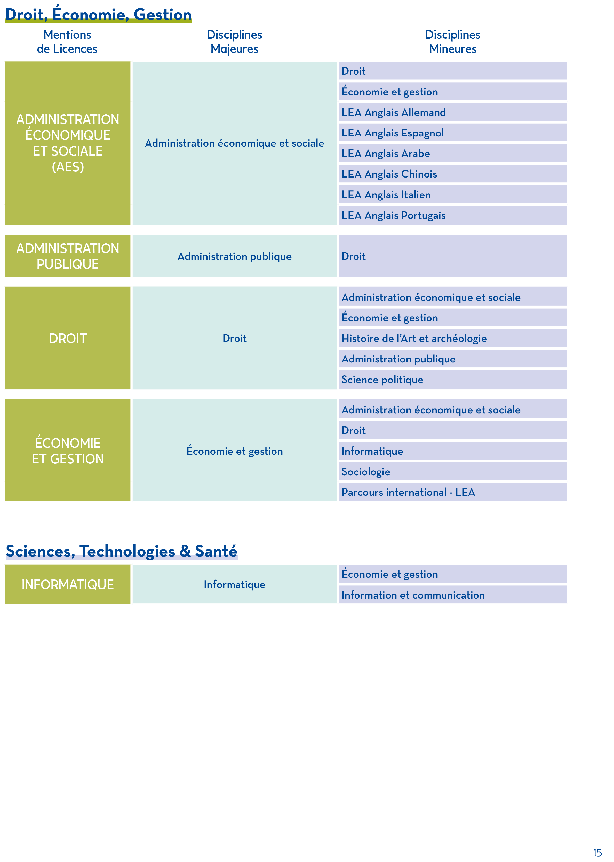Vous souhaitez en savoir plus sur les licences bidisciplinaires et les doubles licences ? Veuillez cliquer sur les intitulés.