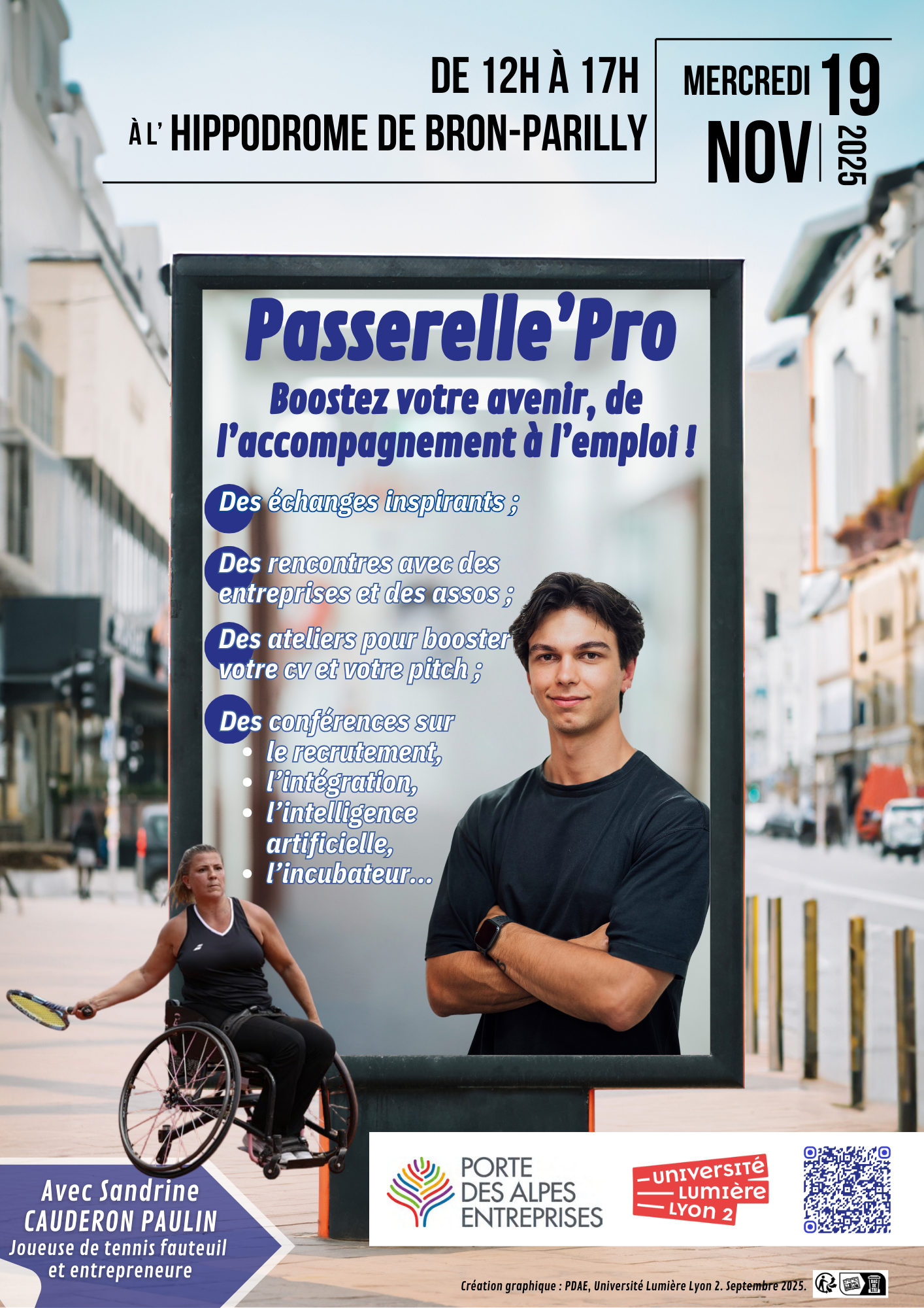 Vous souhaitez développer votre réseau professionnel, découvrir les entreprises et associations du territoire et participer à des ateliers ? L'événement Passerelle'Pro est fait pour vous. Nous vous attendons nombreuses et nombreux le 19 novembre à l'Hippodrome de Bron-Parilly.