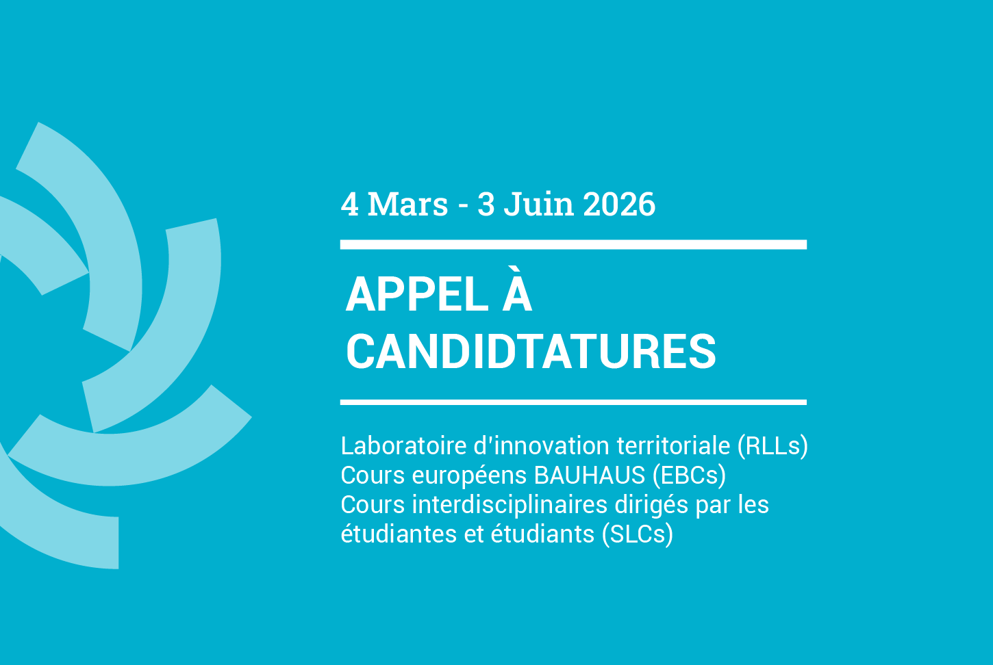 Chaque université partenaire de l’Alliance BAUHAUS4EU établira un RLL par appel, mis en œuvre sur deux semestres consécutifs. Au total, 10 RLLs seront soutenus pour l’année 2026-2027.