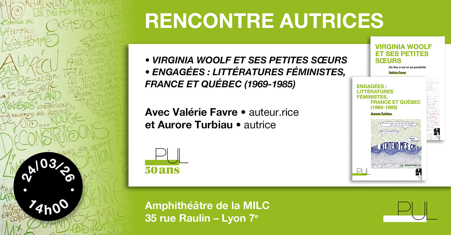 Les Presses universitaires de Lyon sont heureuses de vous convier à une rencontre avec deux de ses autrices, autour de leur ouvrage à paraître le 26 mars 2026 dans la collection "Des deux sexes et autres". Cet événement s'inscrit dans le premier axe du 50e anniversaire des PUL.