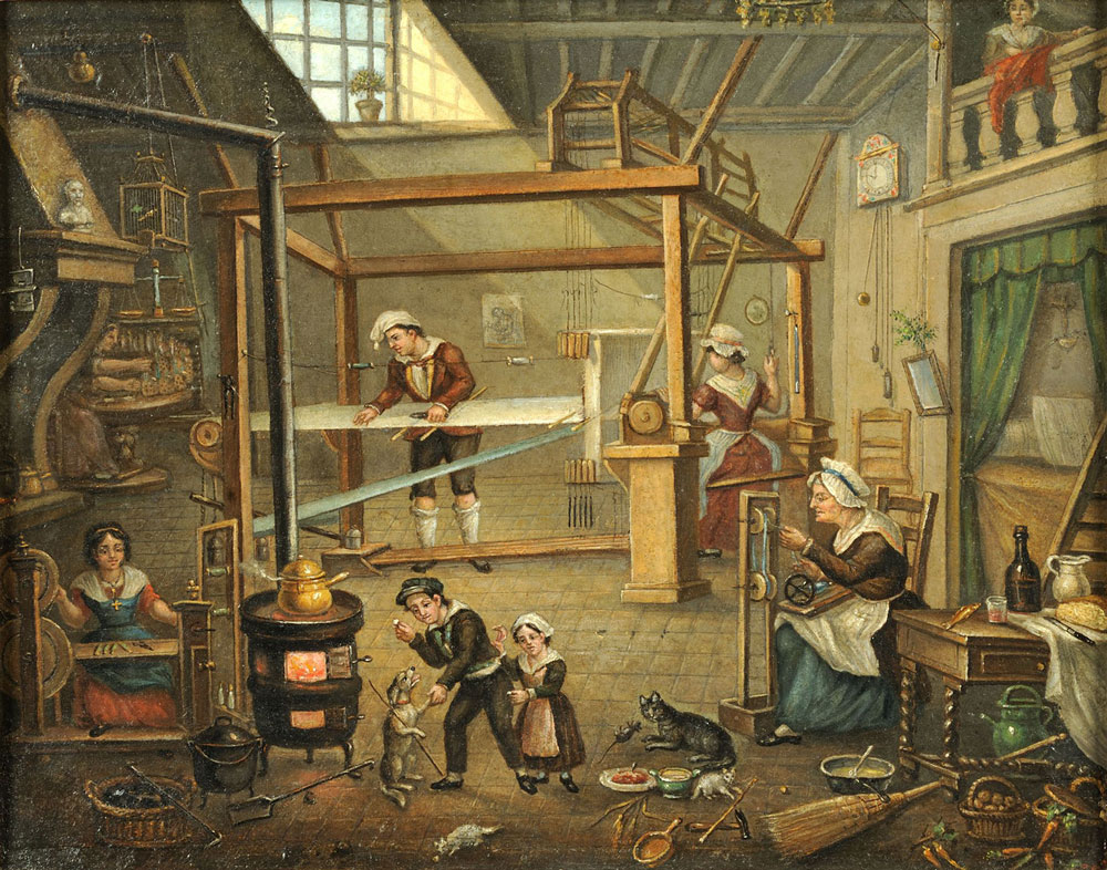 Illustration : Intérieur d'un atelier de canut de Alexis Balthazar © Xavier Schewbel -Musée Gadagne - Lyon