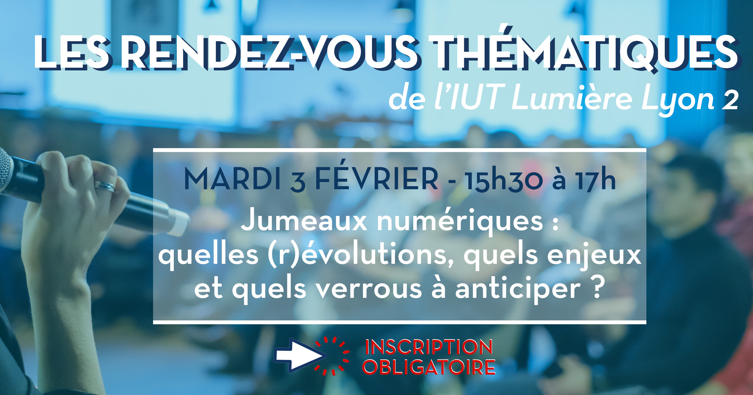 L’IUT Lumière Lyon 2 organise son premier événement dans le cadre de ses rendez-vous thématiques, une conférence dédiée aux enjeux actuels et futurs des jumeaux numériques.