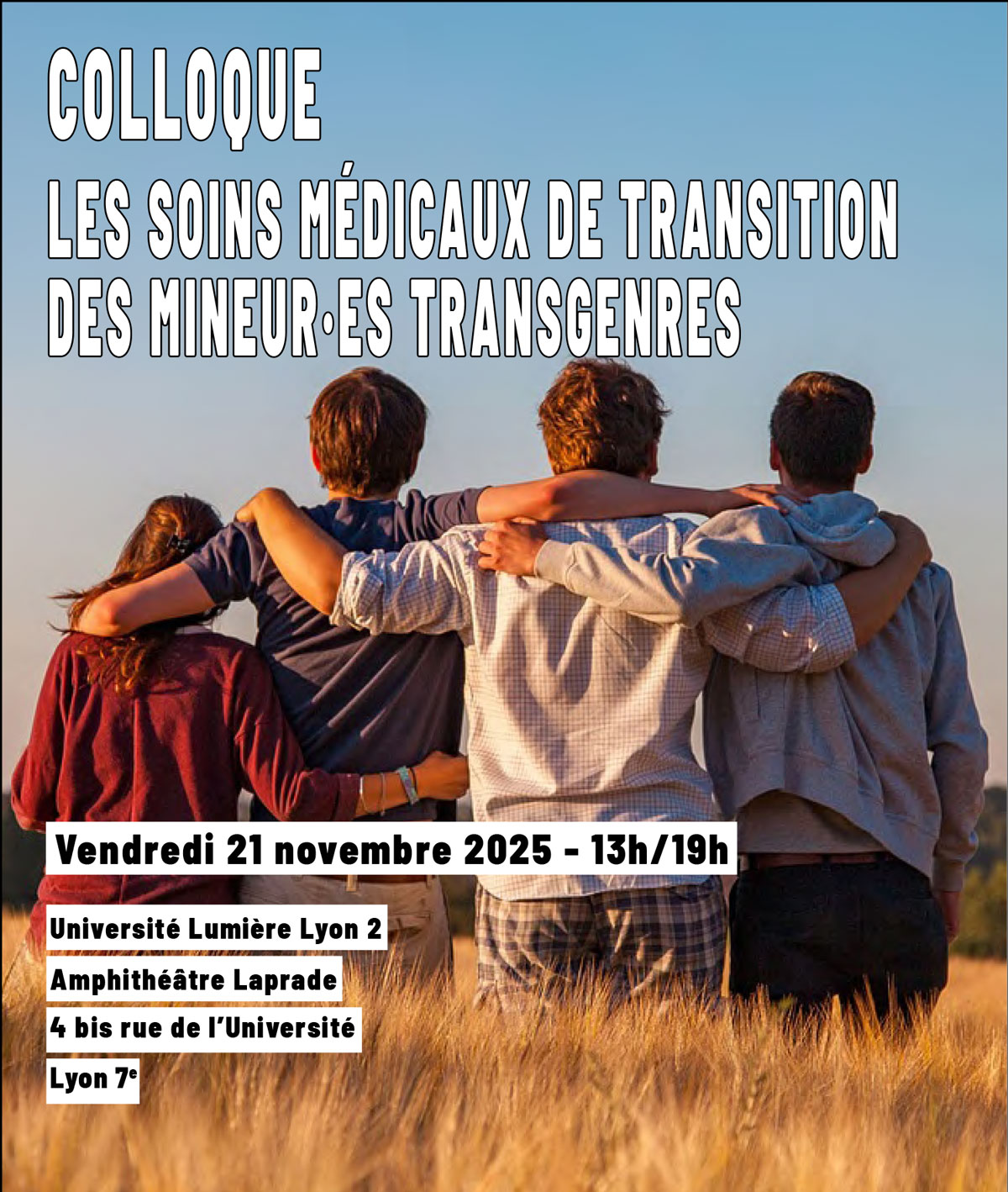 Ce colloque, organisé par la Faculté de droit Julie-Victoire Daubié de l’Université Lumière Lyon 2 en partenariat avec les laboratoires CeRCRID (UMR 5137) et Transversales (EA 4573) tentera de saisir les enjeux juridiques, éthiques et médicaux de la transition des mineur·es transgenres.