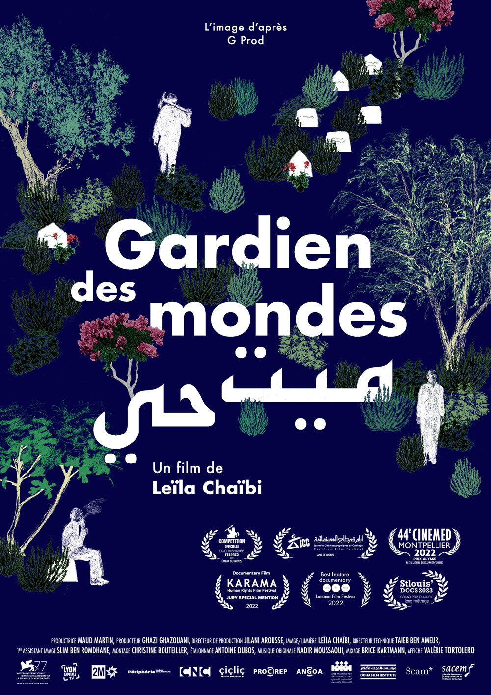 Gardien des mondes, rélisé par Leïla Chaïbi Documentaire français (2021) | Durée : 90 min Il y a près de quarante ans Hassan trouve refuge dans le cimetière du Jellaz sur les hauteurs de Tunis, et s’endort sur un banc au pied d’un tombeau. Depuis, il veille les absents et s’occupe des vivants. Au fil des jours et des nuits, au gré des saisons et des rencontres, Hassan nous fait découvrir la vie singulière de ce grand cimetière. En quête d’amour et de liberté, entre réalité et rêve, il nous guide à travers ses mondes… |