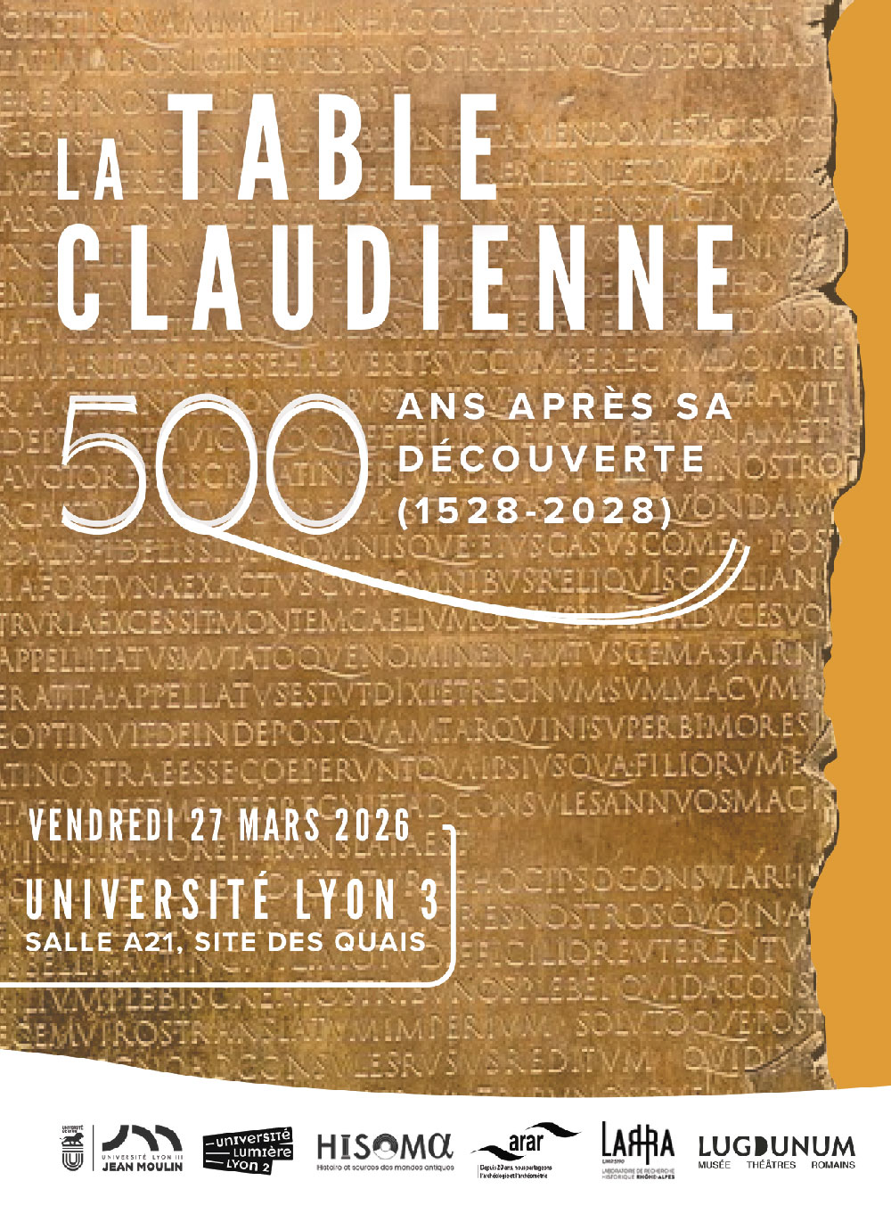 Deuxième journée d'étude organisée dans le cadre du projet scientifique TABVLA qui s’inscrit dans une dynamique de recherche collective à l’approche des 500 ans de la redécouverte de la Table Claudienne (1528–2028).