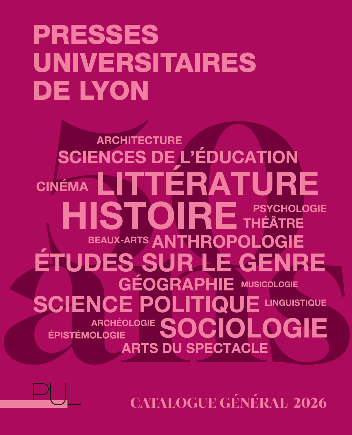 Des mouvements sociaux à l’histoire de Lyon, des études sur le genre aux littératures, des sujets les plus brûlants aux domaines de spécialité les plus pointus, les PUL participent à leur manière à l’affirmation d’une nécessaire analyse critique du monde qui nous entoure, appuyée sur des travaux de recherche. Leur catalogue reflète bien sûr l’évolution des découpages disciplinaires comme des standards scientifiques. Mais il est aussi le témoin de son époque, embrassant les enjeux qui sont au centre des discussions scientifiques comme au coeur des débats politiques, économiques ou sociaux.Avec plus de 1 000 références, dont ce catalogue rassemble celles qui sont disponibles au format papier ou numérique, les PUL espèrent plus que jamais jouer leur rôle – auprès des étudiants et des étudiantes, des universitaires, mais aussi du grand public – en diversifiant les formats et les thèmes, sans renier pour autant leur héritage.