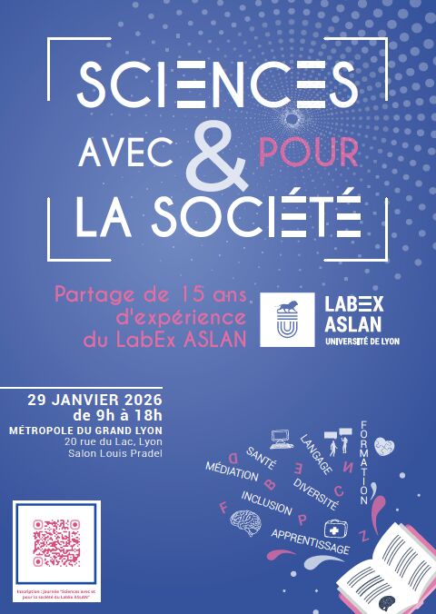 Le LabEx ASLAN (Advanced Studies on Language Complexity), depuis sa création en 2010, participe au développement de la valorisation sociétale du territoire de l’Université de Lyon, en étroite collaboration avec les organismes existants des tutelles tels que le service Culture, Sciences et Société de l’Université de Lyon, Pulsalys ou encore les services valorisations du CNRS et de l’ENS de Lyon. C’est dans ce contexte que le LabEx ASLAN organise une journée de partage d’expérience. Sont invités à cette journée tous les membres des LabEx de l’Université de Lyon, les partenaires académiques (tutelles, etc.) et extra-académiques (écoles, hôpitaux, associations, entreprises, etc.)