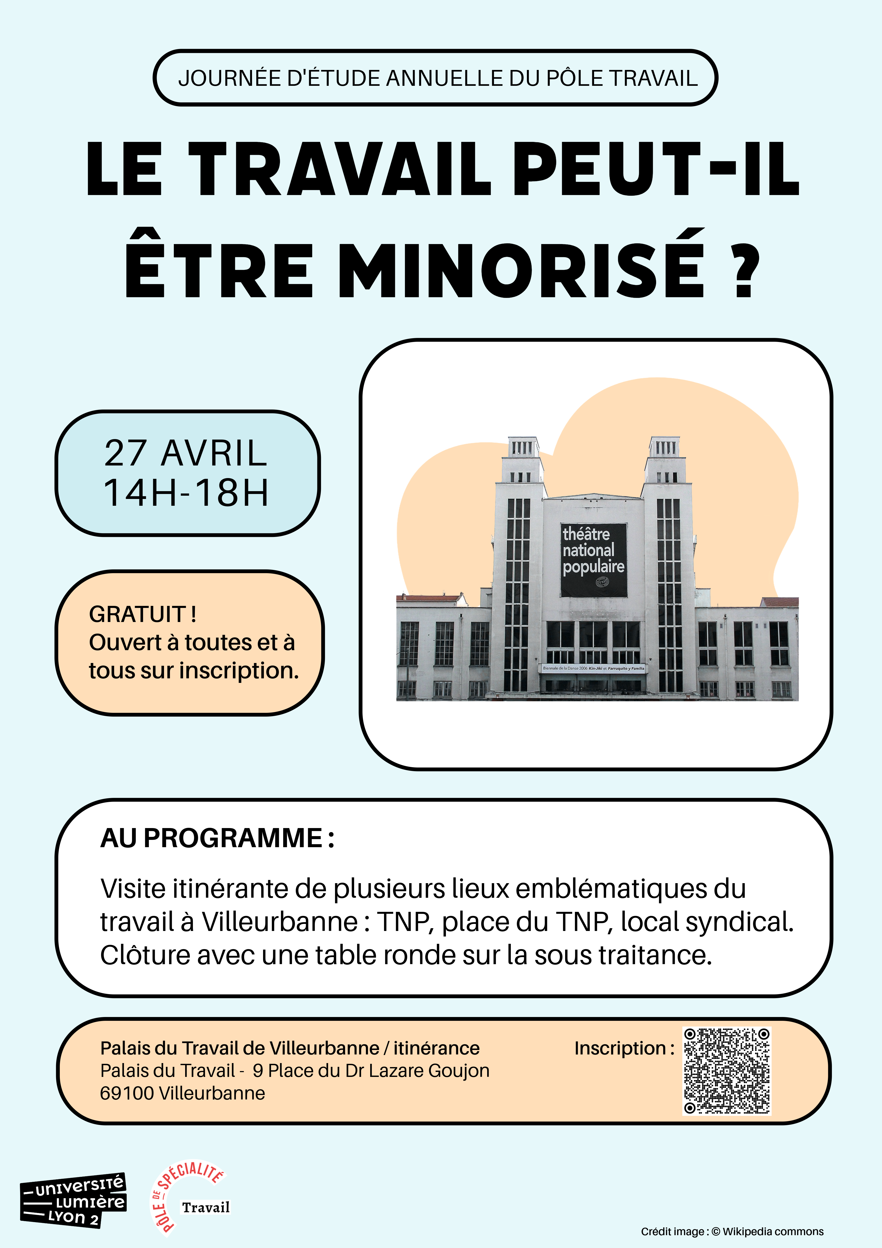 Nous vous emmenons cette année pour une visite itinérante de plusieurs lieux emblématiques du travail à Villeurbanne : TNP, place du TNP, local syndical. Nous clôturerons avec une table ronde sur la sous traitance nommée "Le travail peut-il être minorisé ?".