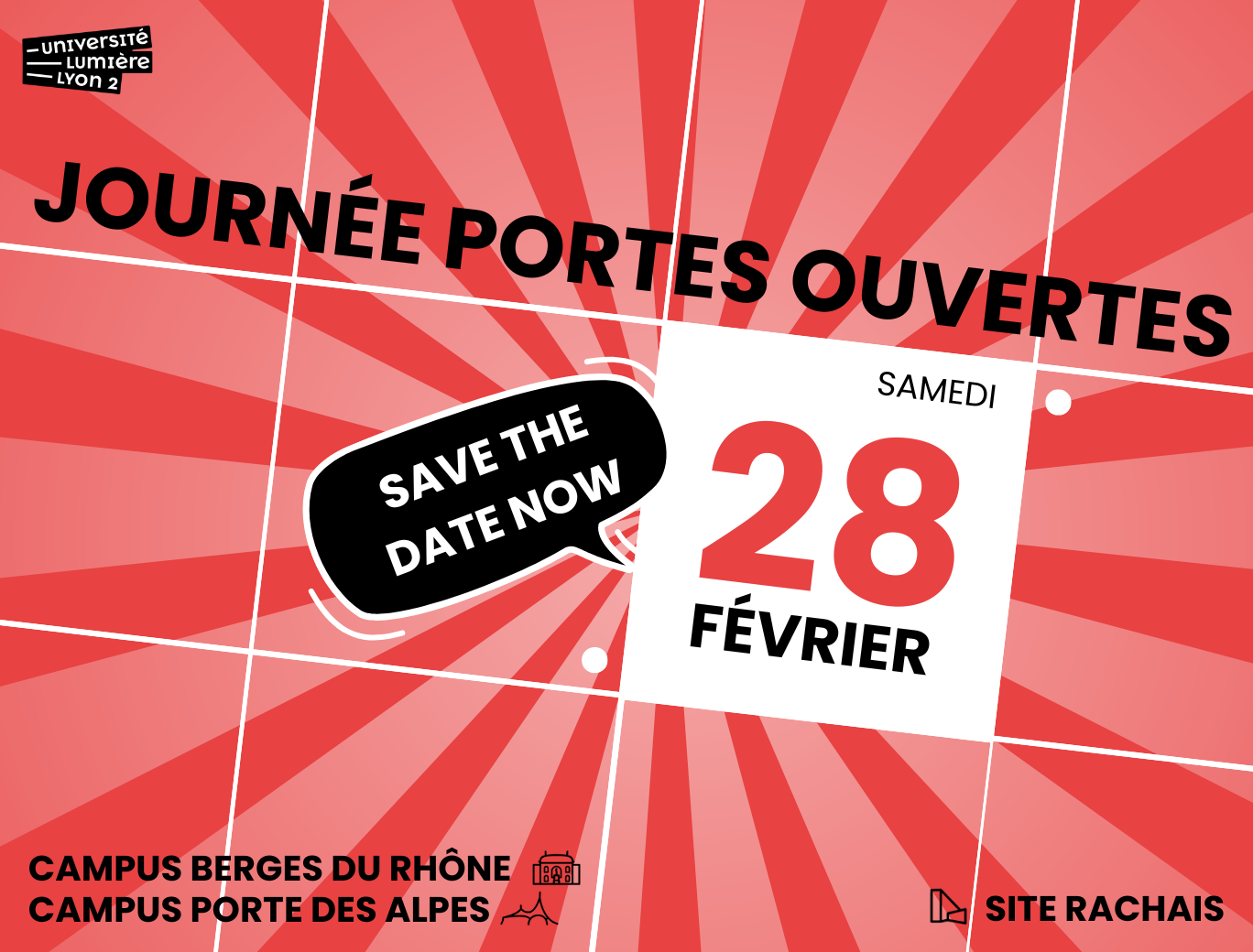 L’Université Lumière Lyon 2 vous ouvre toutes ses portes le samedi 28 février 2026, de 10 h à 16 h. Les UFR, Facultés et Instituts vous accueillent sur les campus Berges du Rhône, Porte des Alpes ainsi que sur le site Rachais.