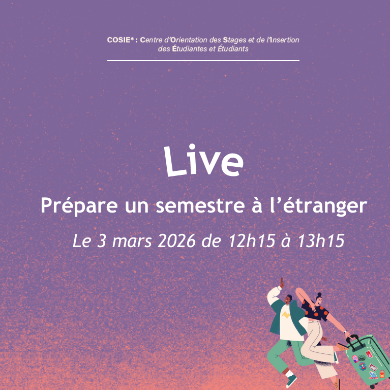 Cette conférence sera animée par des chargées d'orientation du Centre d'orientation des Stages et de l'Insertion des Étudiantes et Étudiants (COSIE). N'hésitez pas à leur poser toutes vos questions à la fin de la conférence.