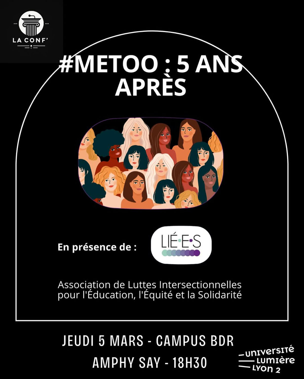 La Conf’ vous convie à une conférence consacrée à un retour socio-historique du mouvement féministe #Metoo. Elle propose de revenir sur les impacts de ce mouvement toujours d’actualité ainsi que les conséquences qu’ont dû affronter les victimes qui ont prit la parole. Ceci, dans une histoire longue de la condition féminine.