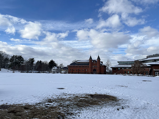 Le campus de Wesleyan University, Connecticut, sous la neige