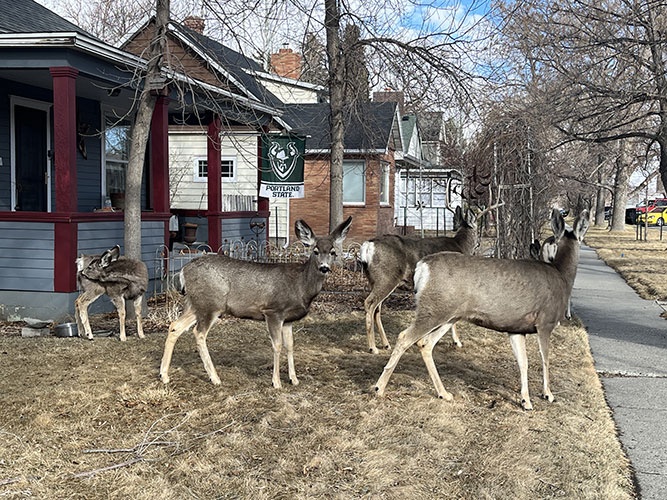 Une rencontre avec des mule deers dans la ville de Cody, WyomingCi-contre, de gauche à droite :