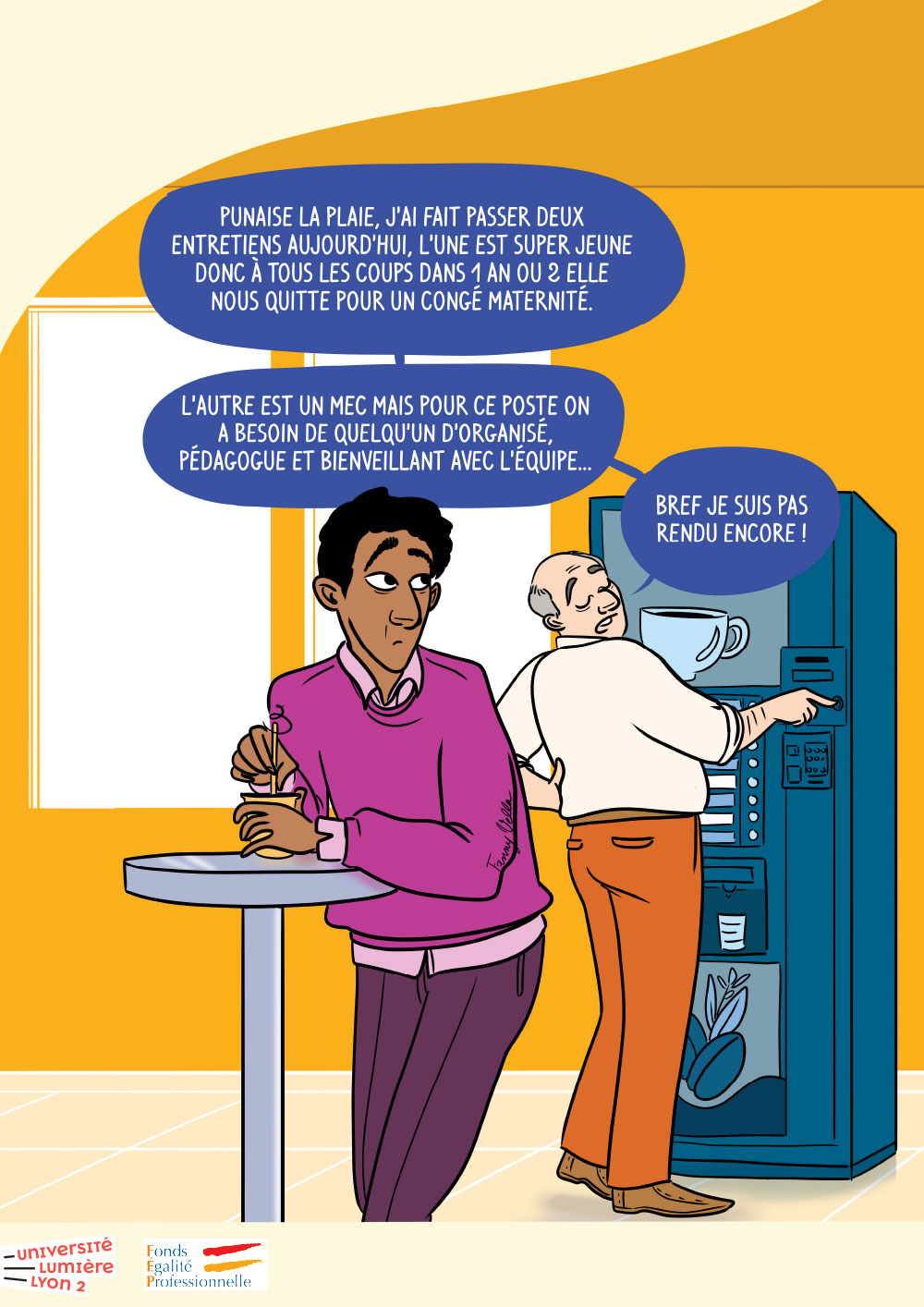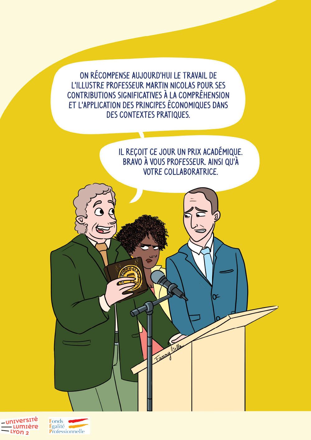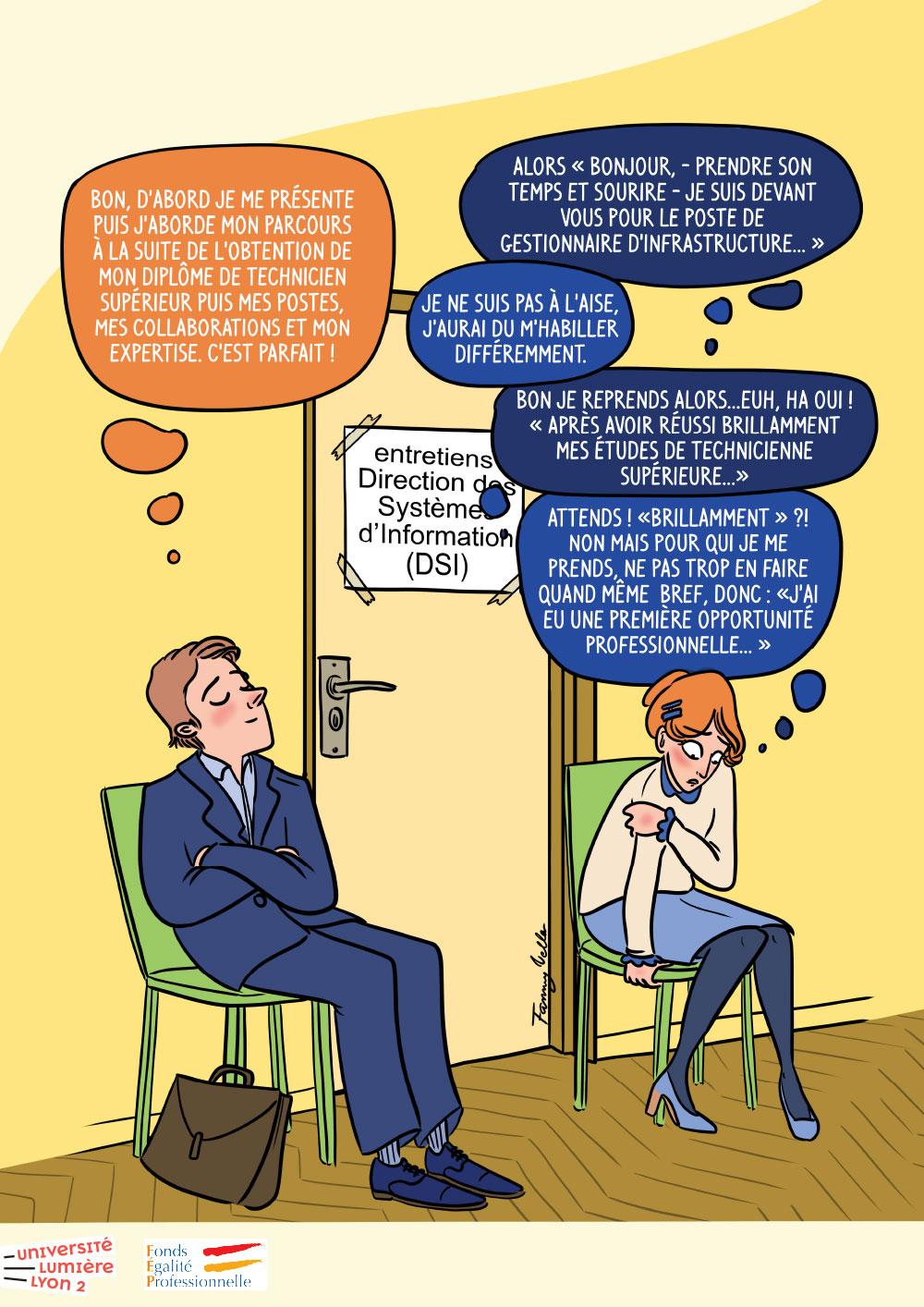 Campagne de sensibilisation sur l'(in)égalité professionnelle et plus particulièrement les stéréotypes et les discriminations liées au genre ainsi que leurs effets dans un contexte professionnel et dans le milieu universitaire.