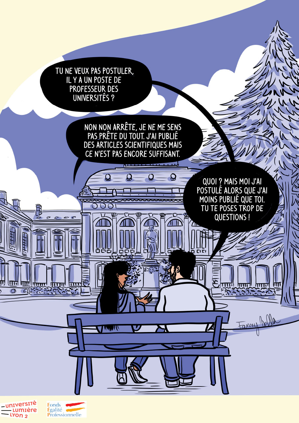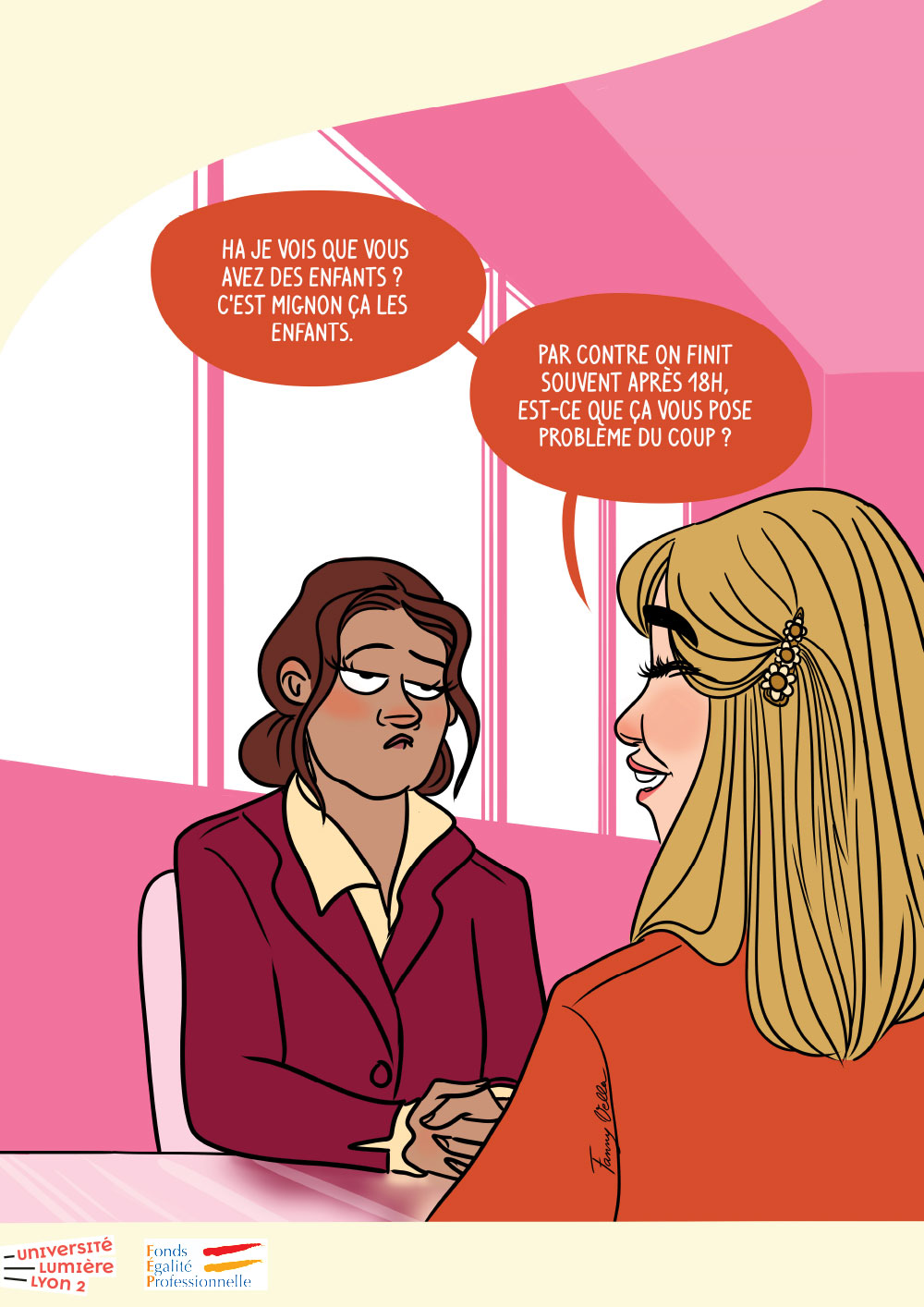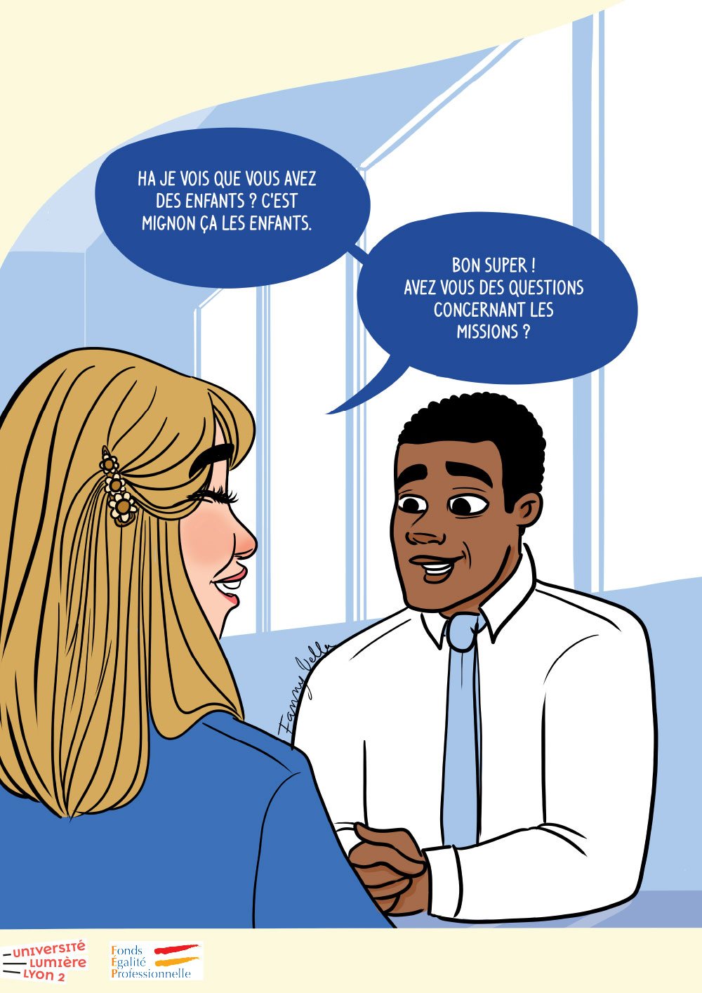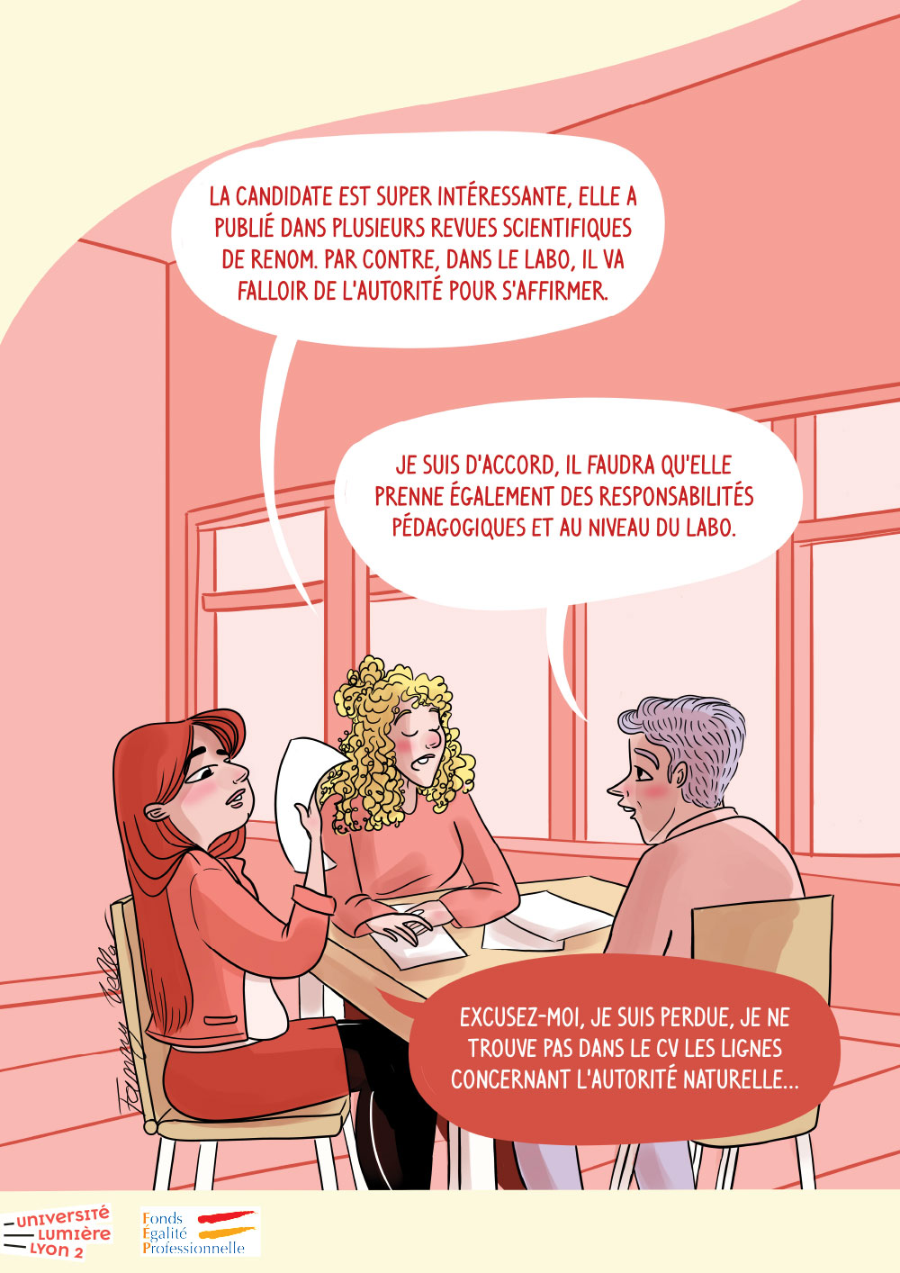 Campagne de sensibilisation sur l'(in)égalité professionnelle et plus particulièrement les stéréotypes et les discriminations liées au genre ainsi que leurs effets dans un contexte professionnel et dans le milieu universitaire.