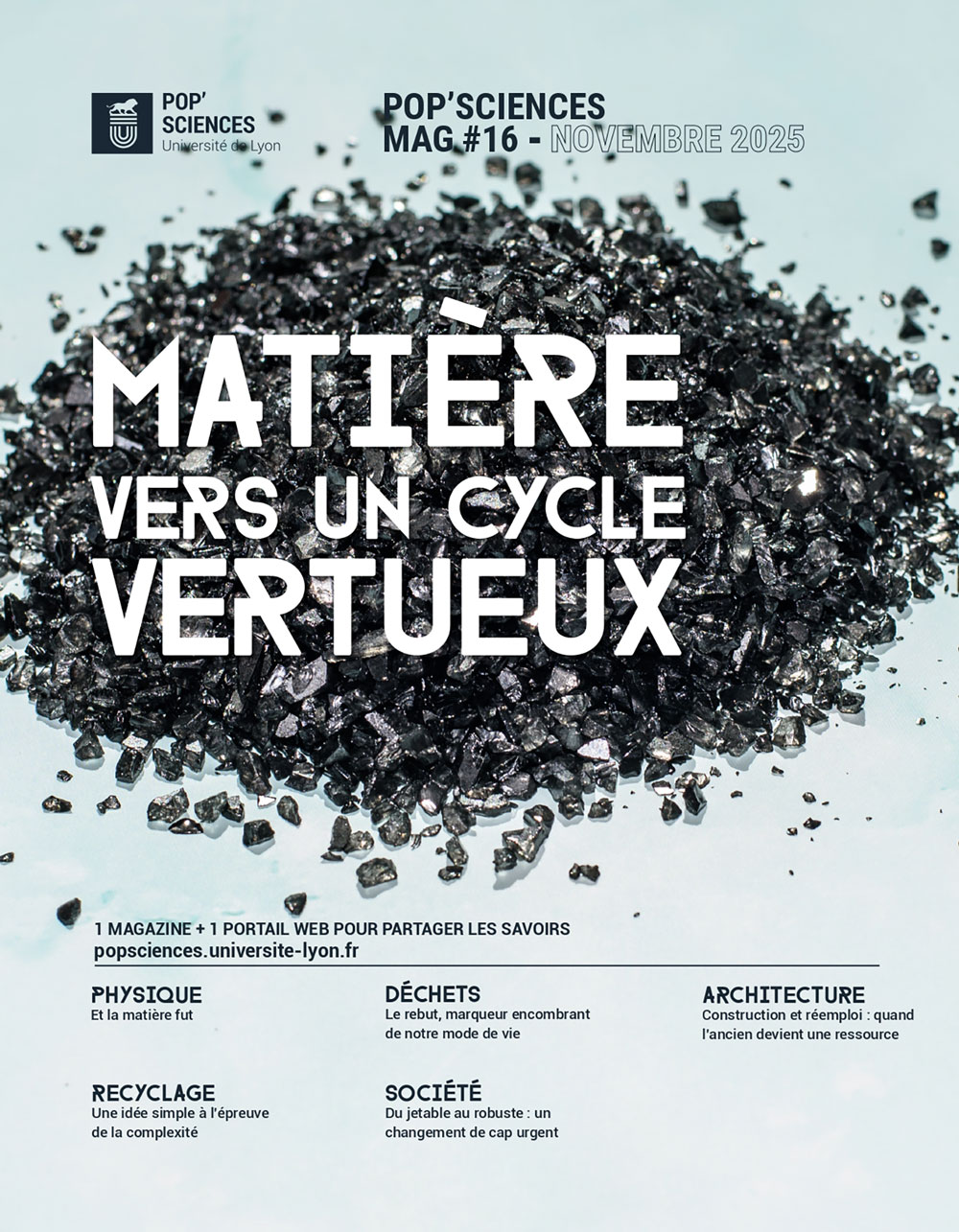 À l'occasion du lancement de ce 16e numéro de Pop’Sciences Mag, une rencontre-débat est organisée à la bibliothèque municipale de la Part-Dieu mardi 18 novembre 2025 de 18h30 à 20h30, avec les regards croisés de Fanny Verrax, professeure associée en transition écologique et entrepreneuriat social, emlyon business school, et Jean-François Gérard, professeur à l’INSA Lyon, directeur du PEPR « Recyclage, recyclabilité et réutilisation des matières ».