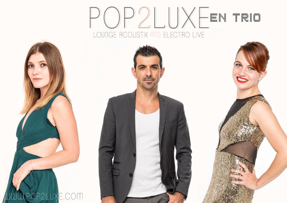 Pop2luxe est un trio grenoblois guitare/voix pop, rock, funk. Le guitariste et les deux chanteuses reprennent des standards des années 70 à nos jours et proposent un set progressif allant de l'ambiance intimiste et lounge à des ambiances festives en POP-ELECTRO.