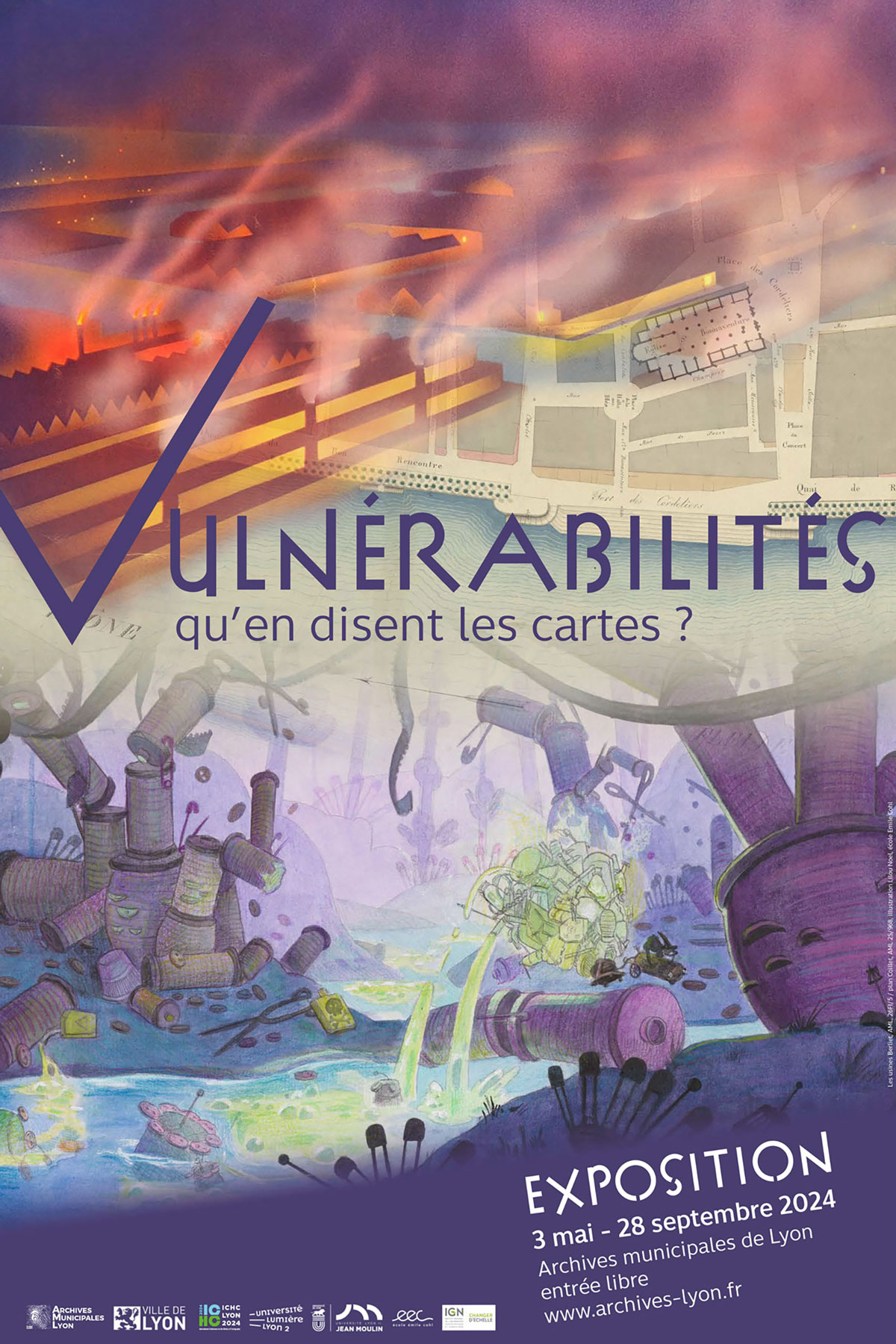 Nous avons le plaisir de vous inviter à venir découvrir le travail réalisé par les deux groupes de l'atelier de méthodes qualitatives "Enquêter avec le visuel" du Master 1 de sociologie, dans le cadre de l'exposition "Vulnérabilités : qu'en disent les cartes?" organisée par les Archives Municipales de Lyon.