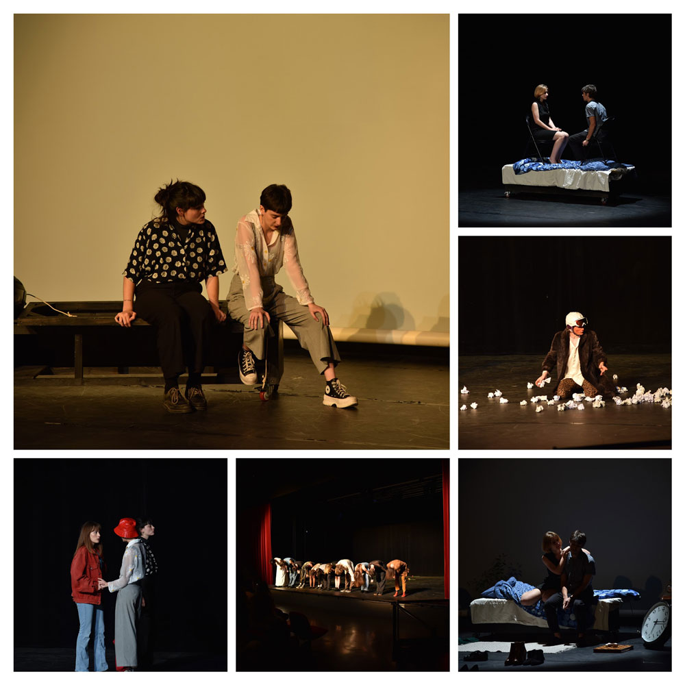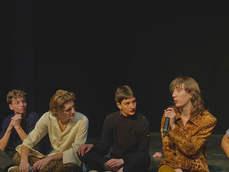 Discussion en bord de scène après la représentationMélodie Fourmeaux, 21 ans- ENS de Lyon en spécialité Théâtre Ulysse Genevray, 20 ans Marie Laurent, 22 ans, Université Lumière Lyon 2 Mylène Lerat, 21 ans, master de philosophie à l'Université Jean Moulin Lyon 3 Matéo Bonin, 22 ans, master 1 journalisme (césure en 2023/2024), Université Lumière Lyon 2 Leïla Wanlin, 20 ans, master Lettres modernes à la Sorbonne Célia Jaillet, 22 ans, Master de Lettres à l'Université Lumière Lyon 2 Pierrick Grillet, 21 ans, formé au conservatoire de Chambéry Ethan Lissillour, 18 ans, CPGE Lettres spécialité théâtre au lycée Edouard Herriot Madeleine Nkilie, 21 ans, 3e année de licence sciences sociales - géographie et aménagement à l'Université Lumière Lyon 2 Victoria Bedoin, 19 ans, CPGE spécialité théâtre au lycée Edouard Herriot